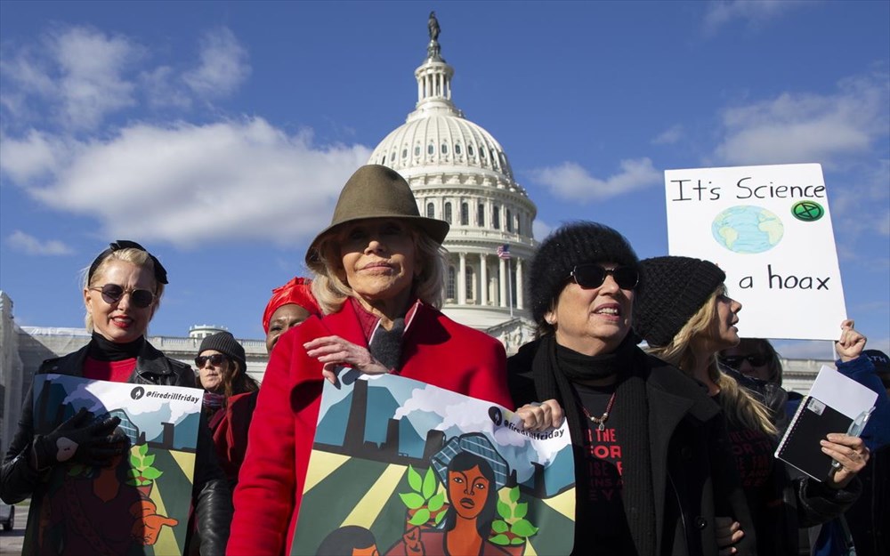 Η διάσημη Αμερικανίδα ηθοποιός Τζέιν Φόντα συνελήφθη για τέταρτη φορά μέσα σε ένα μήνα ενώ διαδήλωνε ενάντια στην απραξία των πολιτικών της χώρας της απέναντι στην κλιματική αλλαγή.